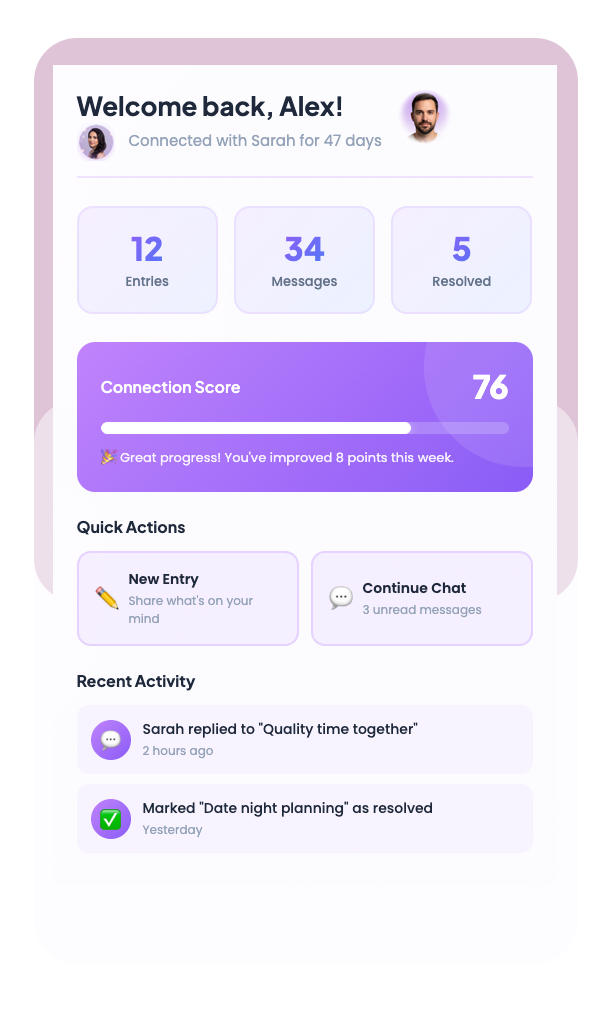 See the patterns you’ve been missing, understand what matters most, and get personalized guidance to strengthen your connection.